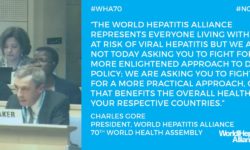 Exposición de Charles Gore, representante de la Alianza Mundial de ONG´s de pacientes de Hepatitis ante los representantes de los Estados reunidos en la Asamblea Mundial de la Salud