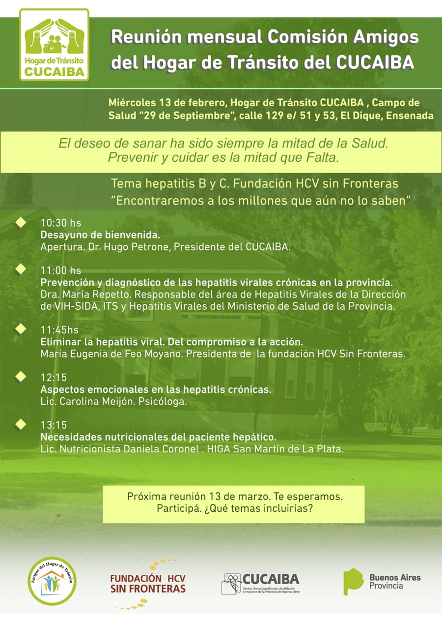 El ciclo de reuniones mensuales de este nuevo año, comienza el próximo jueves 13 de febrero y Fundación HCV Sin Fronteras ha sido especialmente invitada por el presidente del Hogar Robero ISA, para desarrollar temas vinculados a las enfermedades del hígado.