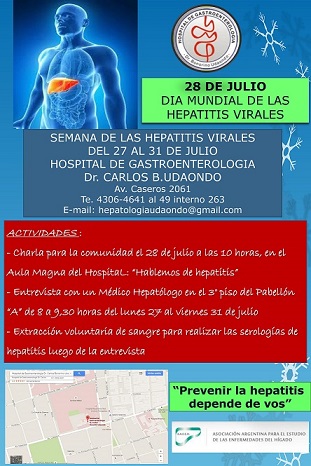 En el mes de julio y en el marco del Día Mundial de la Hepatitis 28 de julio de 2015, el Hospital Udaondo realizará el siguiente programa de actividades para toda la comunidad