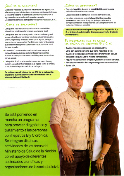 Folleto sobre Hepatitis Virales realizado por la Dirección de Sida y ETS del Ministerio de Salud de la Nación Argentina - Imagen: Fundación HCV Sin Fronteras