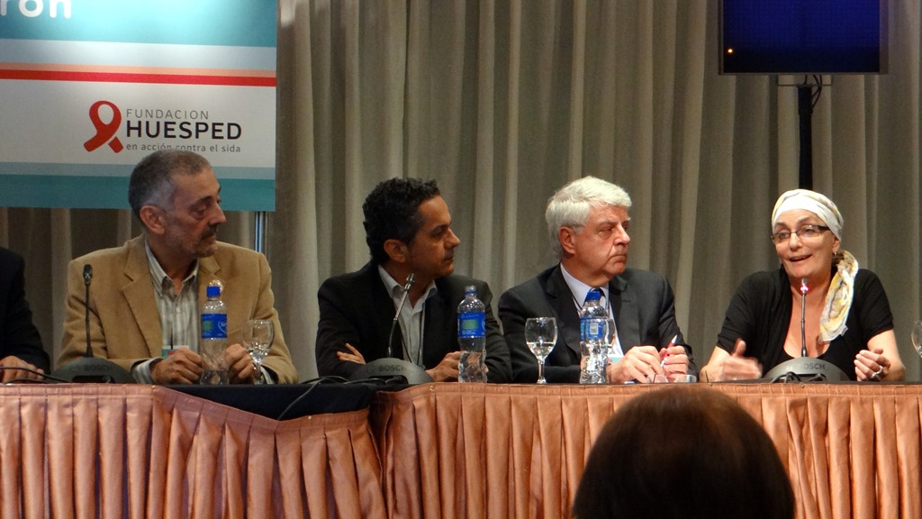 Coordinó la mesa el Dr Pedro Cahn, y participaron del panel el Dr. Rafael Esteban (España), Dr. Mario Pessoa (Brasil), Dr.Fabianne El-Far (México), Eduardo Pérez Pegué (Argentina) y Sandra Hidalgo (Argentina).