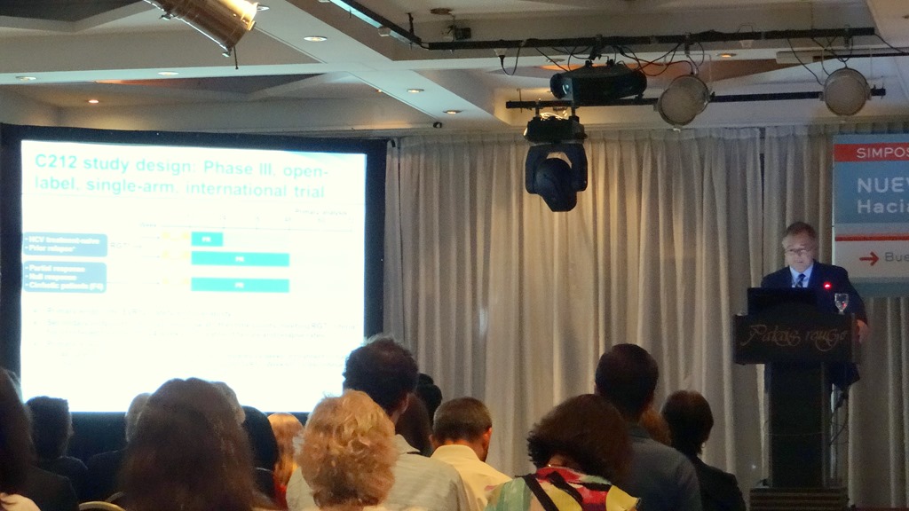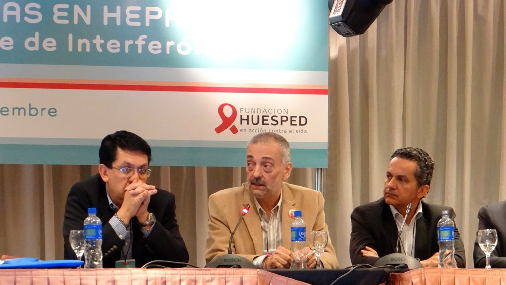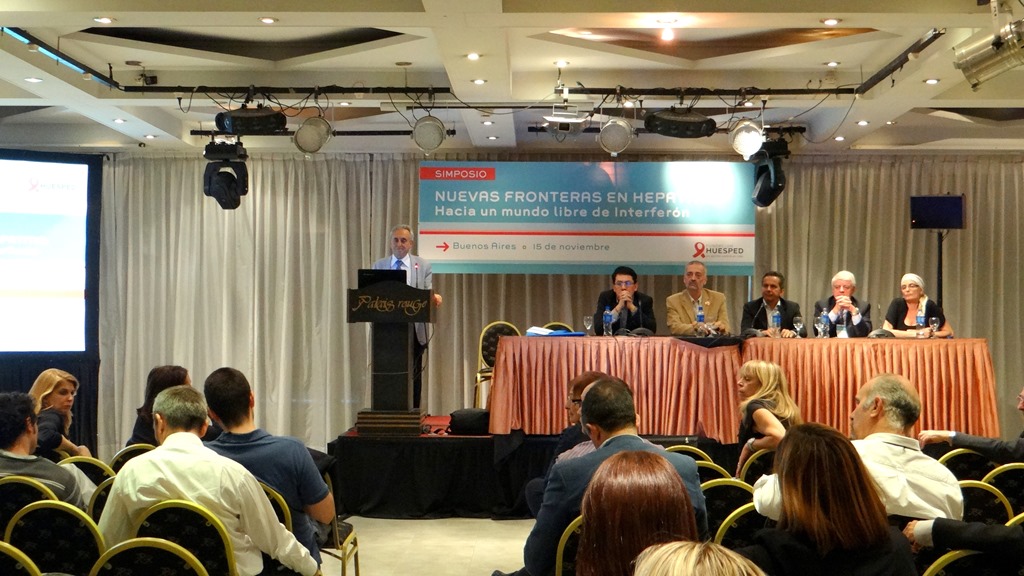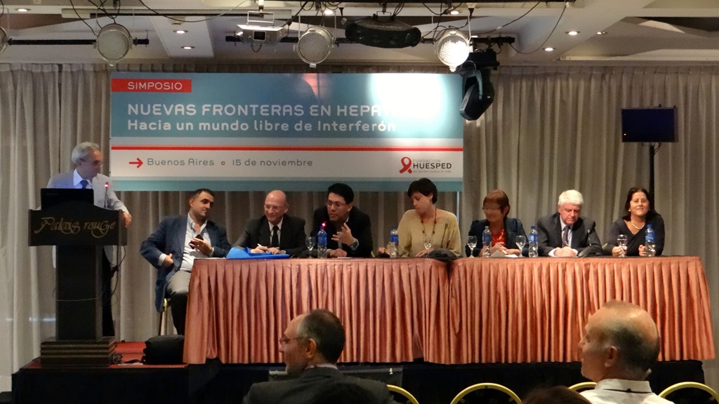 El pasado 15 de noviembre la Fundación HCV Sin Fronteras, participó por invitación de Fundación Huésped, en la jornada Nuevas Fronteras en Hepatitis: Hacia un mundo libre de Interferón, jornada realizada por Huésped en Palais Rouge de la Ciudad Autónoma de Buenos Aires, con la participación de invitados nacionales e internacionales, y representantes del estado, la Sociedad Civil y la industria farmacéutica, se debatió sobre el uso de las nuevas drogas para tratar las hepatitis C y B que se presentaron en los últimos congresos de la Asociación Europea para el Estudio del Hígado y especialmente del ultimo realizado este mes en Washington por la Asociación para el Estudio de las Enfermedades del Hígado en EEUU.