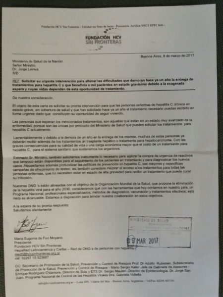 Carta urgente al Ministro de salud en Argentina por personas con hepatitis C en estado grave y sin medicación