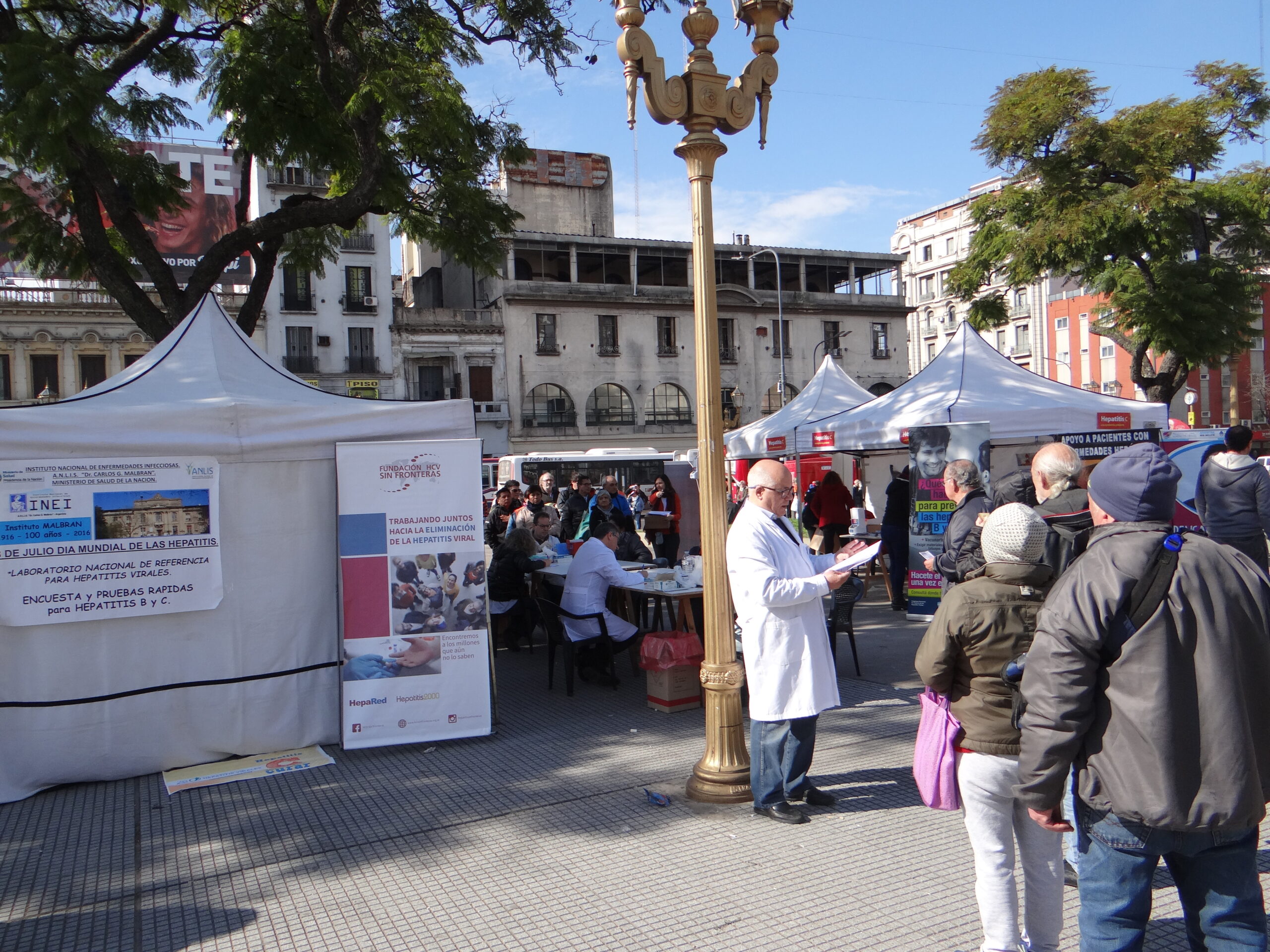 En el Dia Mundial de la Hepatitis y con una campaña de test rápidos para hepatitis C y B organizada por el Programa Nacional de Hepatitis con la colaboración del Laboratorio del Instituto Malbrán, Programas Sanitarios de la ciudad,Sociedad civil representada por voluntarios de Fundación HCV Sin Fronteras, Asociación Buena Vida y Fundación Icalma,Sociedad científica representada por la Asociación Argentina Para el Estudio de las enfermedades del hígado; más de 600 personas se acercaron a la Plaza Miserere en el centro de la ciudad de Buenos Aires para hacerse el test , informarse y vacunarse para hepatitis B
