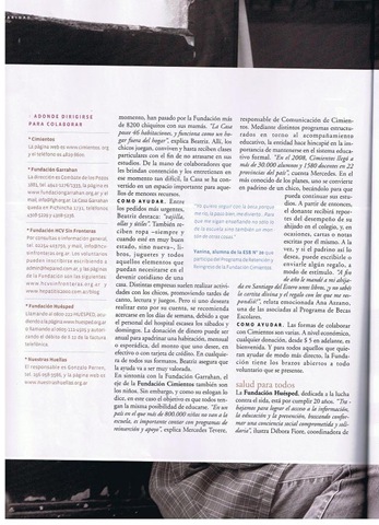 De esta forma la Revista Entrecasa acerca información sobre cómo colaborar con entidades de bien público como Fundación Garrahan, Fundación Cimientos, Nuestras Huellas, y Fundación HCV Sin Fronteras y las acciones desarrolladas por las mismas.